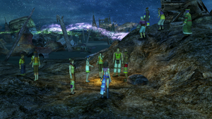 What are all these people doing here? Well, I guess information technology's similar the Mecca of Spira then people are gonna pilgrimage. Yuna, naturally, is opposed to the idea of other people treading the path she once took that resulted in the earth being saved. Let'southward find out who'south behind this. Caput up the eastern hill and talk to the person in the familiar-looking bluish robe.